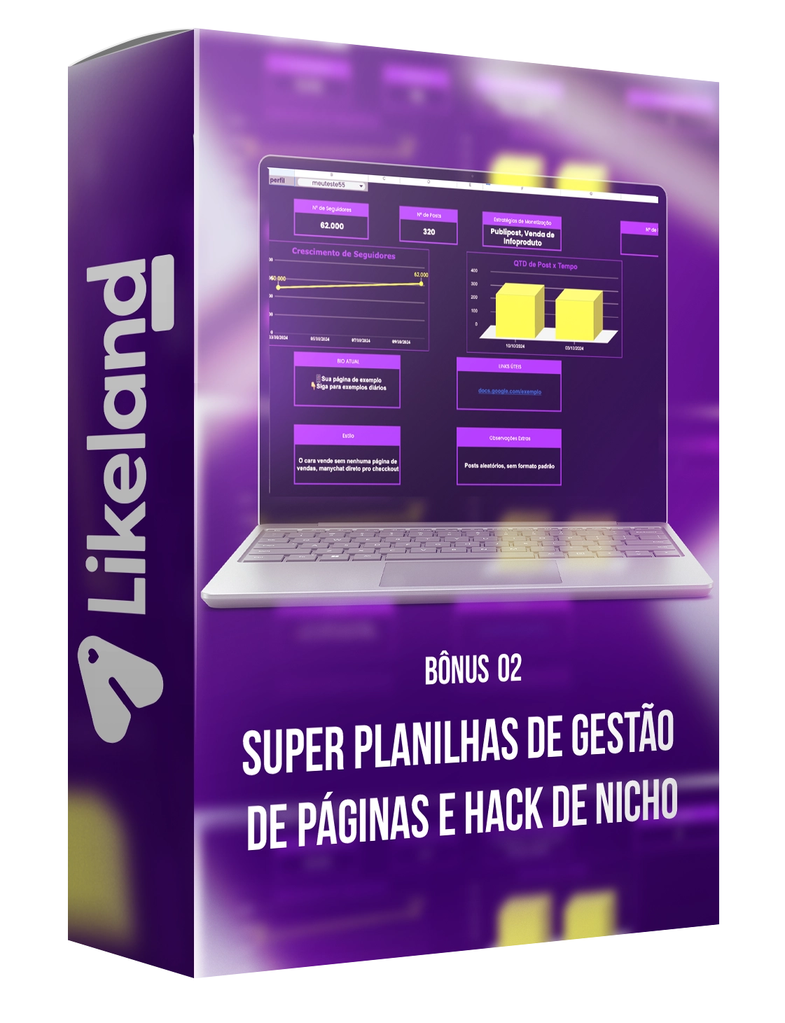 A Like Land Pro é ideal para qualquer pessoa que queira lucrar com páginas de Instagram, mesmo sem conhecimento prévio em marketing digital. Nossa metodologia começa do zero, guiando passo a passo na construção, viralização e monetização Se você deseja alcançar resultados sem precisar aparecer ou investir em tráfego pago, a Like Land Pro é para você.